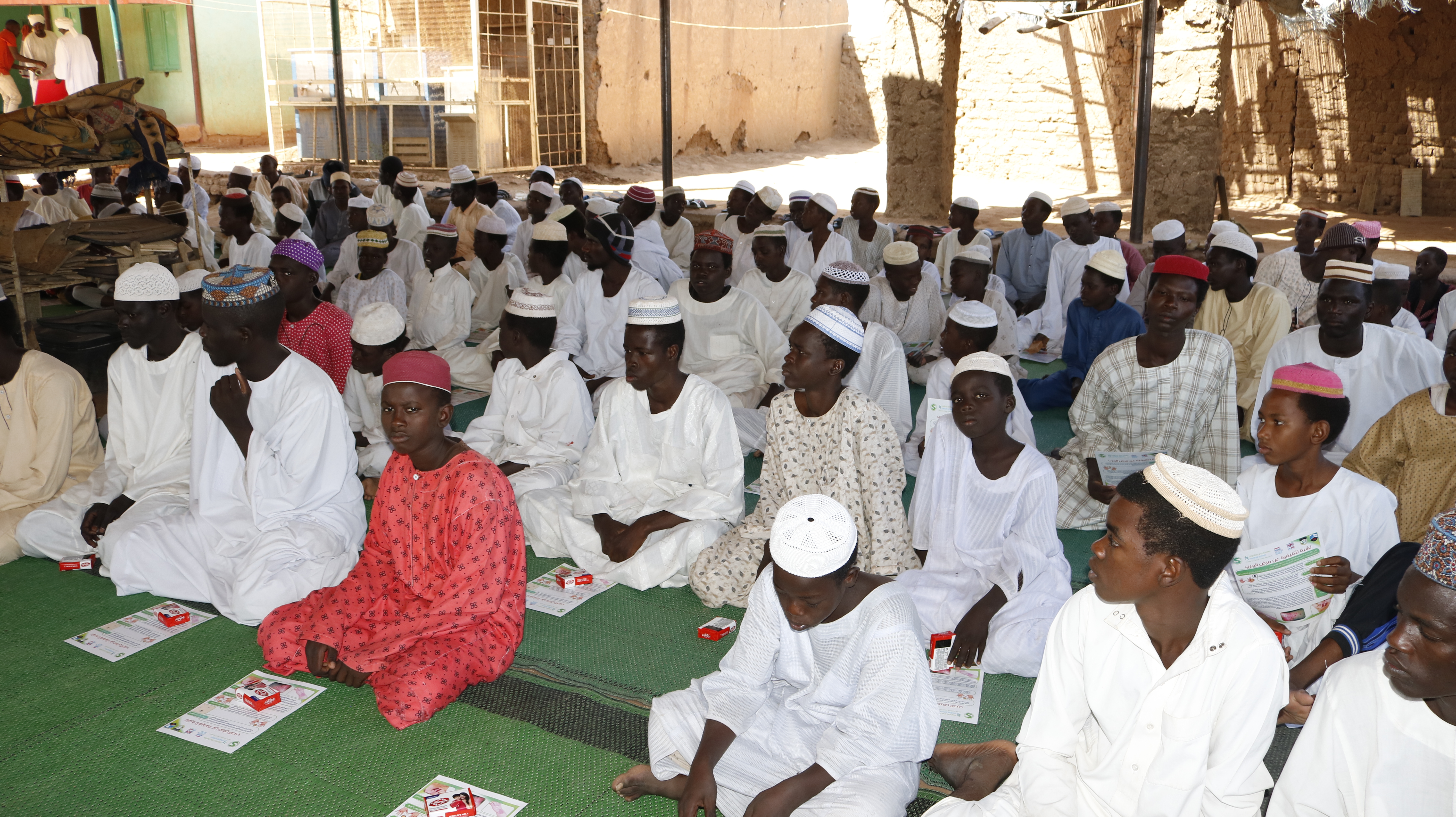 Meetings with local educational staff and local leaders followed, and as a result, four community awareness sessions were arranged. Two took place in primary schools (one for girls, one for boys) and involved pupils, teaching, and support staff. And the other two took place at Quranic schools.
